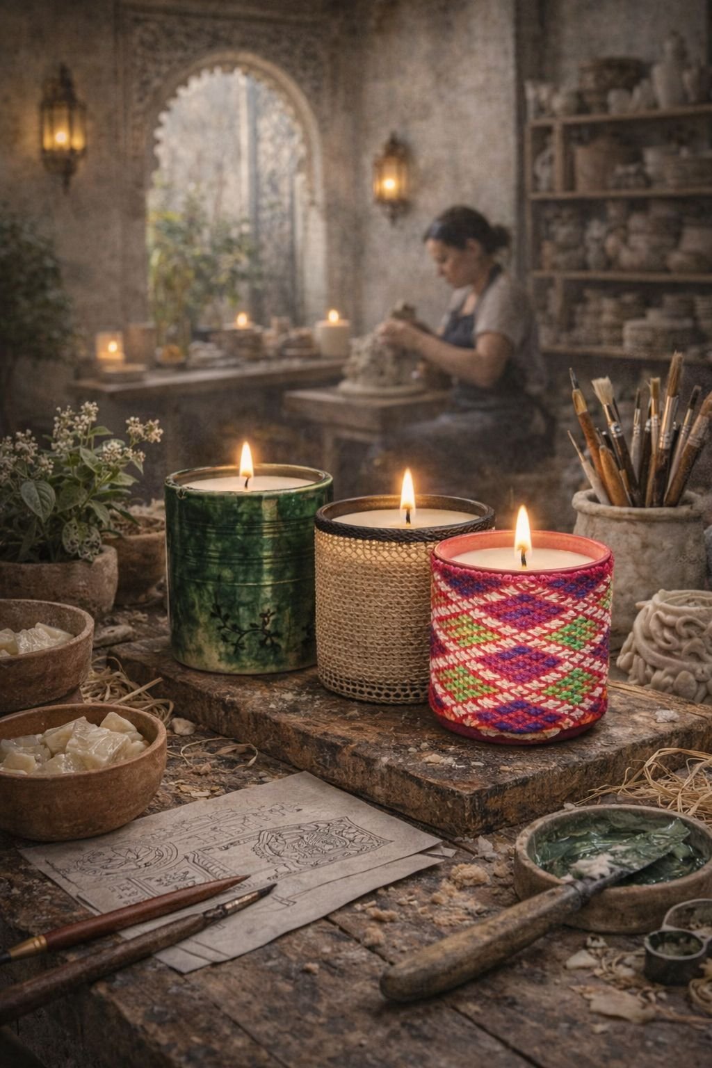 Nour Bougie offers a diverse range of collections designed to suit every aesthetic sensibility. Shapes include round, oval, cylindrical, geometric forms, as well as designs inspired by traditional Moroccan objects such as tajines, bowls, cups, and vessels.